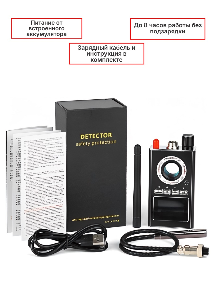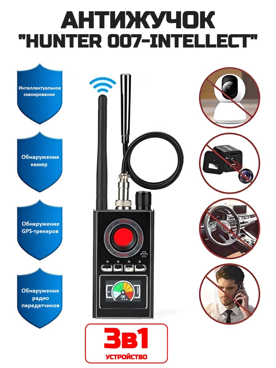 Многим кажется, что "шпионские" устройства существуют только в фильмах. На самом деле это не так. Различные устройства для прослушки чужих разговоров, скрытые видеокамеры и микрофоны, а также устройства слежения активно применяются в реальной жизни. Особенно часто это происходит в сфере бизнеса и финансов, где информация ценится больше денег. В офисах крупных компаний часто устанавливают скрытые жучки, GPS-трекеры, камеры и другое оборудование с целью получить важную информацию, составляющую коммерческую тайну. Кроме того, "шпионское" оборудование может быть установлено в домах, квартирах, гостиничных номерах и т.д. Для обнаружения таких устройств наш интернет-магазин предлагает приобрести мощный антижучок 3в1 "Hunter 007-Intellect". Данное устройство выполнено в компактном корпусе и способно находить приборы с радиоканальной передачей данных, магнитные GPS-трекеры, а также различные типы беспроводных видеокамер. Пользоваться антижучком сможет каждый, для этого не нужно быть специалистом в области радиотехники. Рекомендуем это устройство всем, кому важно защитить личную или коммерческую информацию от несанкционированного прослушивания.