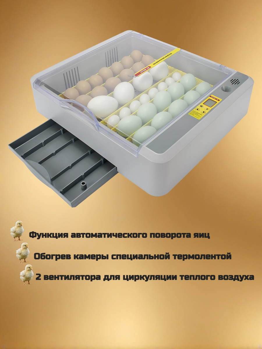 Если температура в камере или уровень влажности отклонятся от заданных вами значений, прибор незамедлительно оповестит вас об этом тревожной звуковой сигнализацией. Вы сможете быстро устранить причину и сохранить требуемый микроклимат. Специальные датчики постоянно мониторят температуру и влажность, так что в течение всего цикла инкубирования эти параметры будут строго контролироваться.