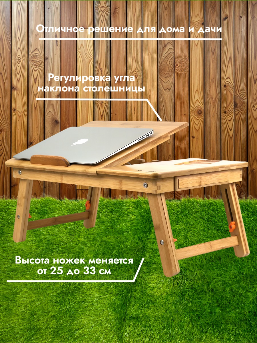 Прекрасный столик для работы с ноутбуком и не только. Бамбуковый столик для ноутбука SITITEK Bamboo 2 изготовлен из экологичного материала — бамбука. Наклонная столешница позволяет настроить удобный угол, раскладные ножки — подобрать нужную высоту, специальная выемка для чашки гарантирует, что Вы не "смахнете" случайно свой чай или кофе, а спрятанный сбоку ящик пригодится, чтобы сложить в него необходимые мелочи: флешки, ручки, записки. Но самое важное — это мощная система охлаждения. Она реализована грамотным способом и состоит из двух крупных вентиляторов, питающихся от USB-порта. Очень удобно и комфортно!