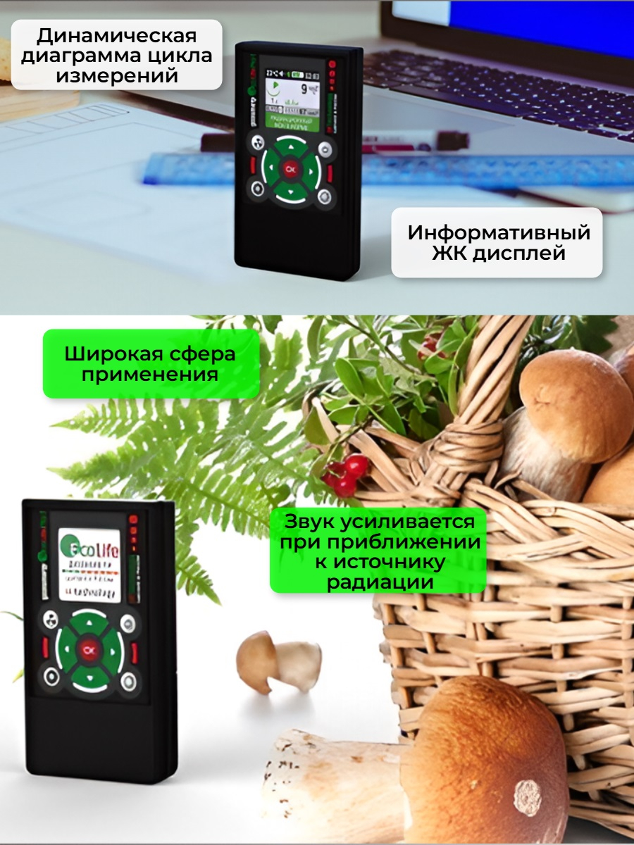 "EcoLifePro1" — уникальный российский дозиметр радиации, полностью отечественная разработка профессионального уровня, проявляющая максимальное "дружелюбие" по отношению к конечному пользователю. Прибор крайне прост в обращении, но при этом обеспечивает высочайшую скорость и точность работы.