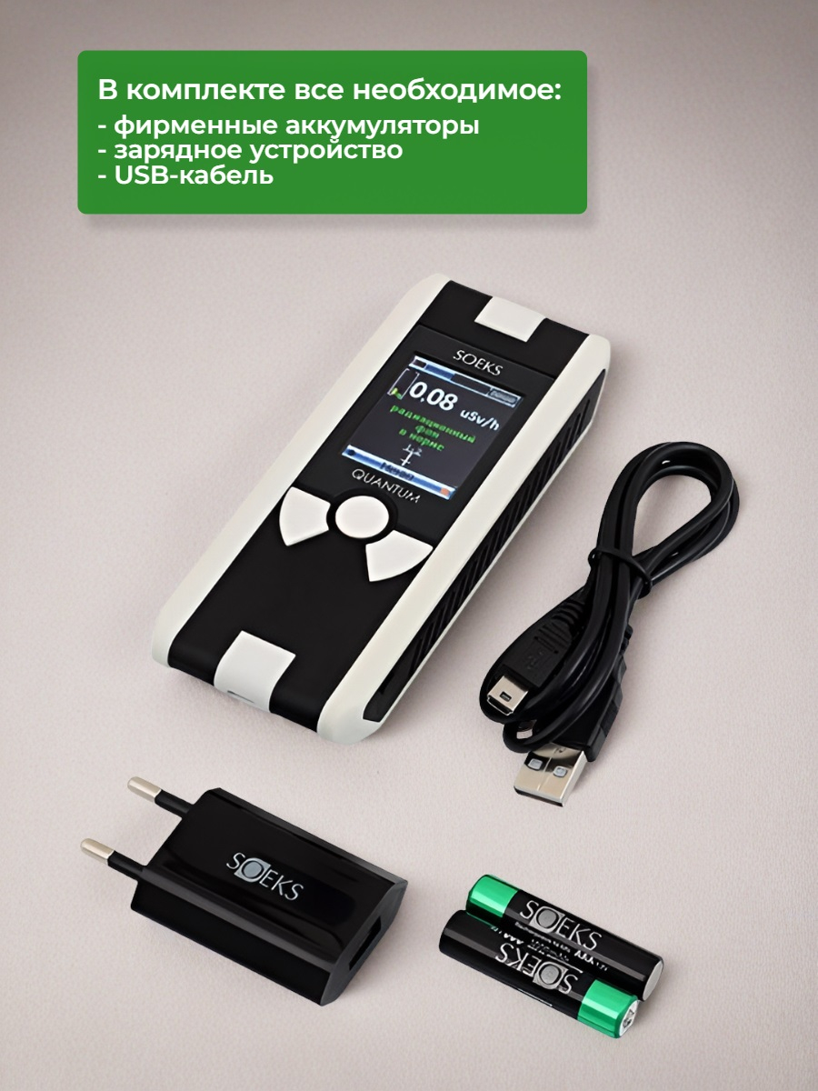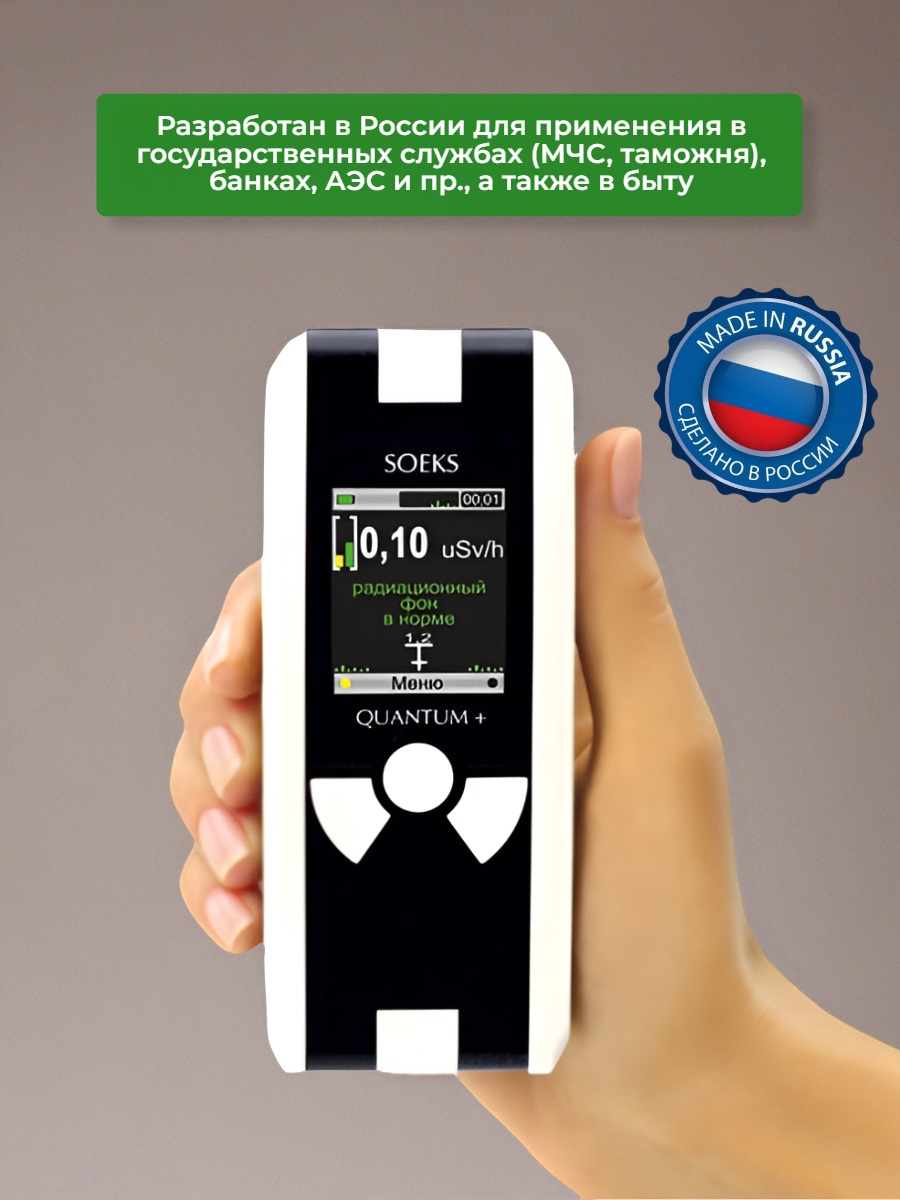 Дозиметр радиации СОЭКС/SOEKS "Quantum" отличается применением сразу двух встроенных счетчиков Гейгера-Мюллера, благодаря которым работает точнее и быстрее моделей с одним датчиком. В дополнение к измерению текущего уровня радиации может выполнять функцию счетчика накопленной дозы, по которой можно более точно установить безопасное время пребывания в условиях повышенного фона. Значения, измеренные за сутки, сохраняются в памяти прибора и могут отображаться на встроенном цветном ЖК-экране в графическом режиме, что упрощает восприятие информации. Для более удобного просмотра архива прибор также поддерживает синхронизацию с компьютером для выгрузки на него информации, установки новых версий прошивок и пр. возможностей.
