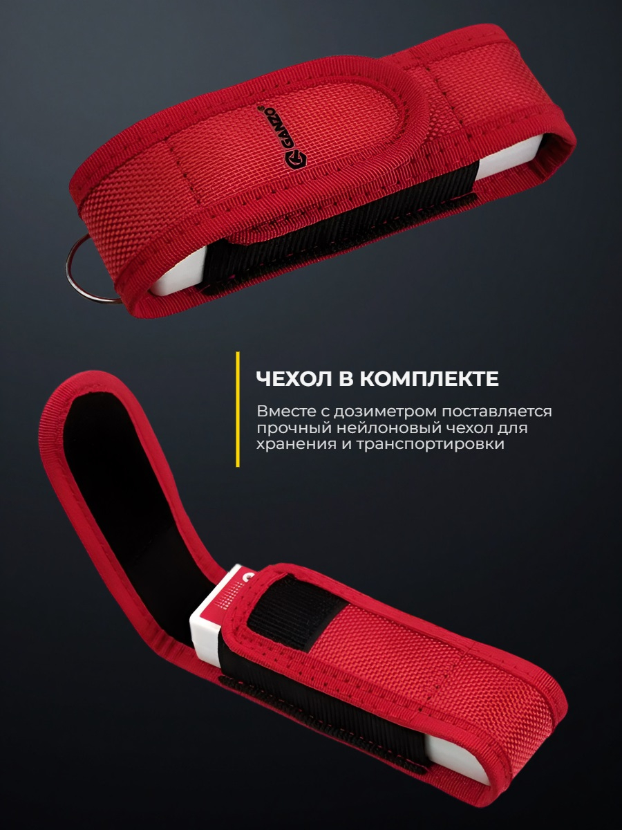 Тканевый чехол в комплекте — дозиметр "Родник 5" имеет удобную систему крепления, а также комплектуется нейлоновым чехлом, в котором его удобно хранить и транспортировать. Два отверстия на боковой стороне корпуса прибора предназначены для крепления ремешка, что позволит носить его на руке или на ремне.