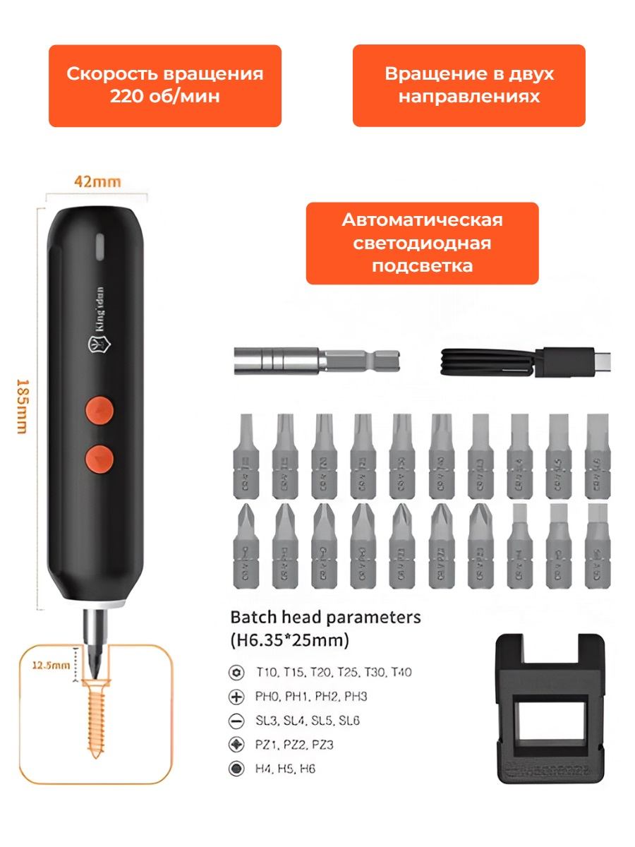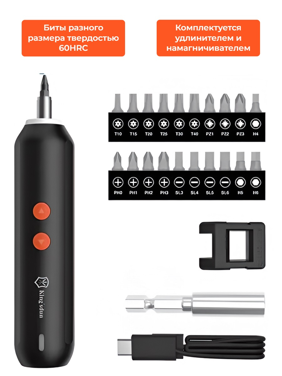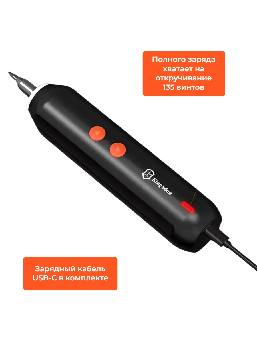Электрическая отвертка SD05 является отличной альтернативой классической ручной отвертке. Они почти такая же компактная по размеру и тоже очень удобно лежит в руке, но при этом позволяет быстро выкручивать и вкручивать любые винты (в комплекте набор из 20 сменных бит) практически без усилий. Данная модель отличается повышенной по сравнению с аналогами мощностью, что позволяет использовать ее для работы даже с большими и плотно "засевшими" винтами. С таким инструментом можно ремонтировать любые гаджеты и бытовую технику, часы, а также собирать/разбирать мебель.