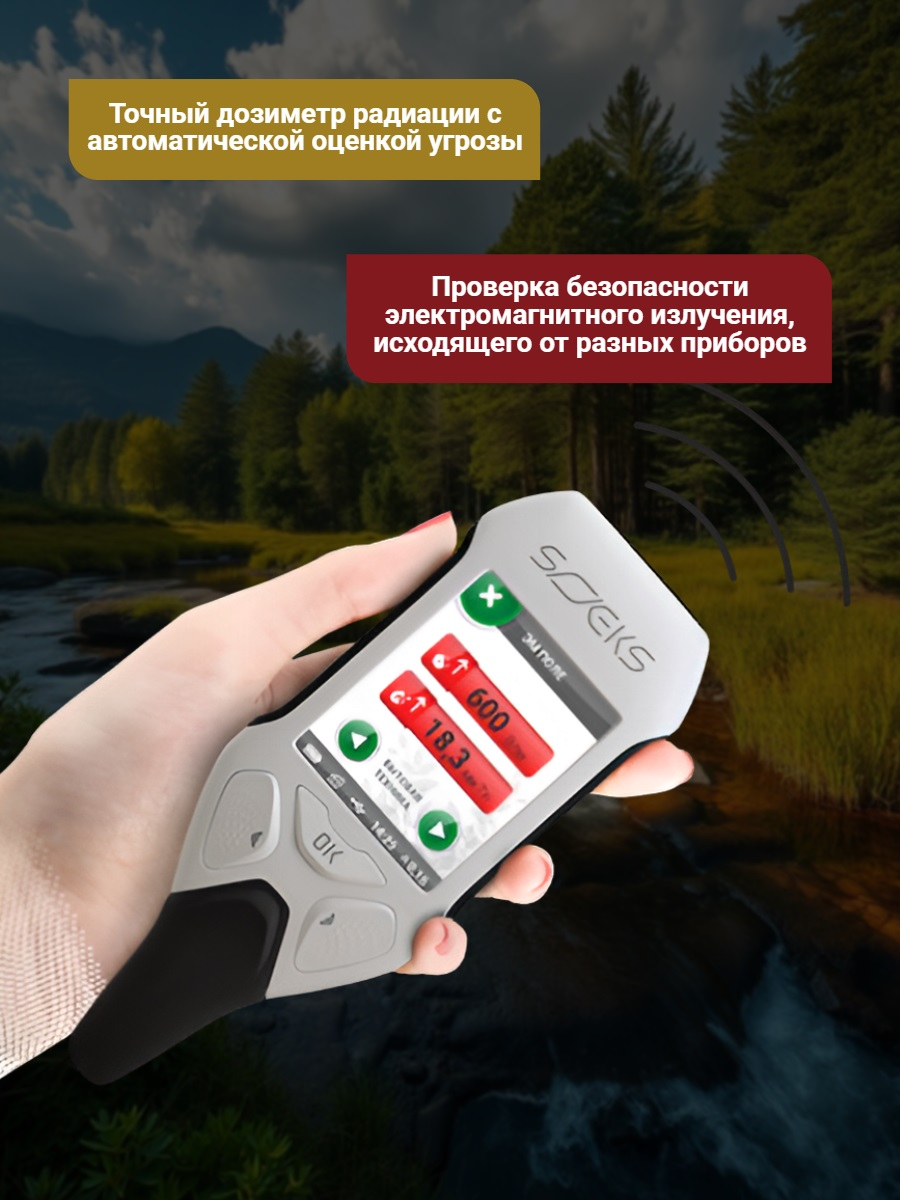 Дозиметр радиации. При включении данного режима на дисплей прибора выводится значение уровня радиационного фона или накопленная доза облучения. При этом вам не нужно помнить, какие уровни радиации являются безопасными для здоровья. В зависимости от уровня радиации цвет фона экрана может быть зеленым, желтым или красным, что соответствует нормальному, повышенному и сильно завышенному уровню радиации. Вам останется лишь посмотреть на экран, чтобы решить для себя, стоит ли покупать тот или иной продукт или приближаться к предметам.