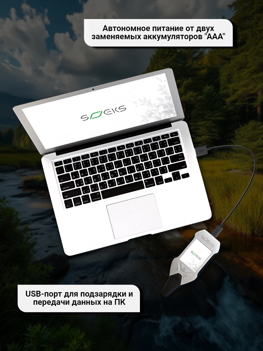 Эковизор работает от установленных внутри аккумуляторов и обладает небольшим энергопотреблением, что позволяет пользоваться устройством без подзарядки в течение суток. Таким образом, зарядив прибор утром, вы сможете быть уверенными, что он будет оказывать вам пользу в течение всего дня. Кроме того, если вы планируете использовать прибор более длительное время вне дома, то без особого труда сможете подзаряжать его от любого USB-порта. Но и это ещё не всё! Даже при отсутствии зарядного устройства вернуть эковизор "к жизни" можно будет путем самостоятельной замены элементов питания, т.к. в нем установлено два стандартных аккумулятора ААА-типа, вместо которых можно установить обычные батарейки схожего типоразмера.