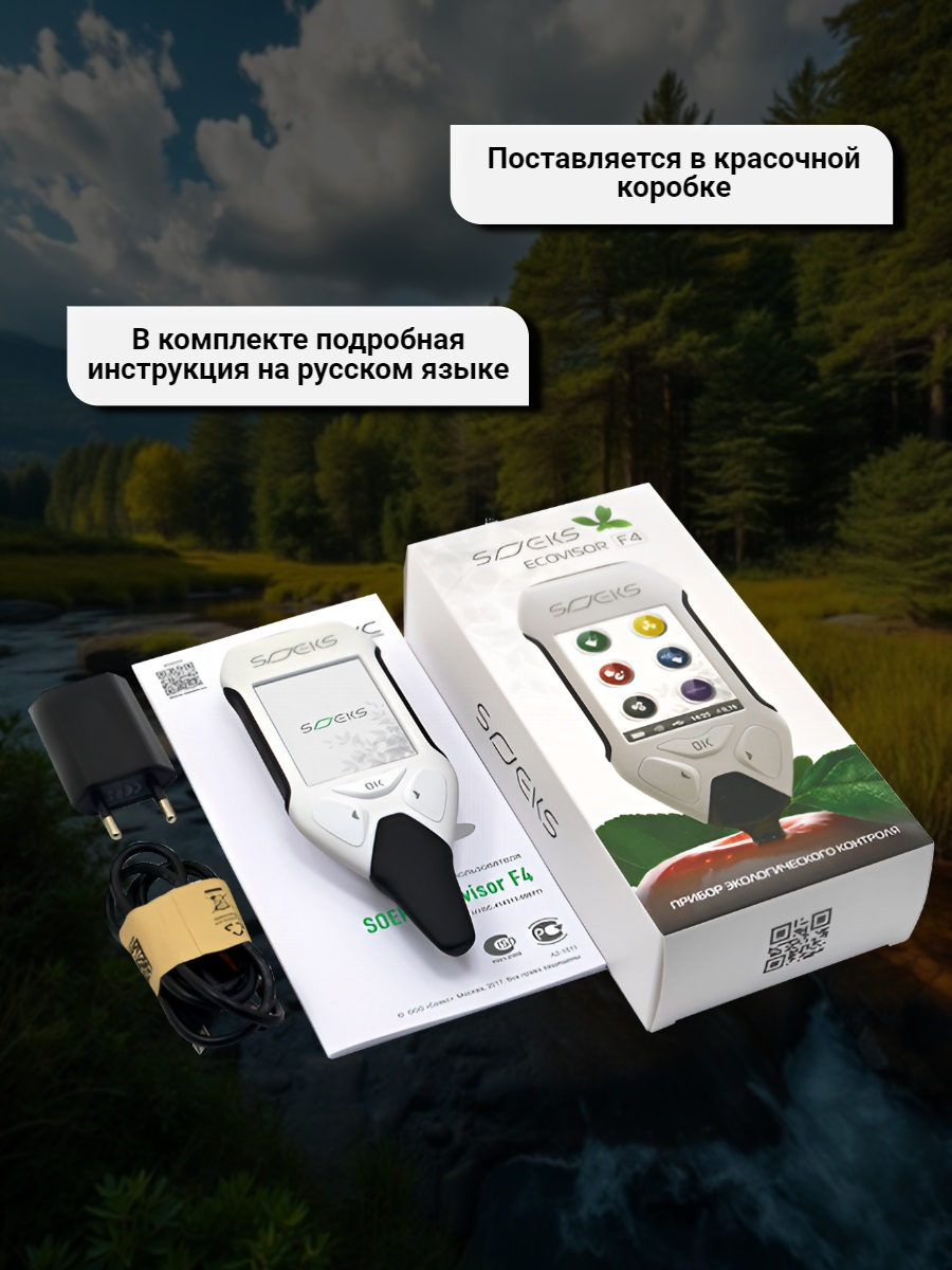 Четыре-в-одном: встроенный нитратомер подскажет содержание нитратов в пищевых продуктах, дозиметр проверит на радиоактивность окружающие предметы и обстановку, электромагнитный детектор оповестит о невидимом вредном излучении электроприборов, а индикатор качества воды поможет определить её пригодность для питья и бытовых нужд. Показания в цифровой и графической форме выводятся на крупный цветной экран, который для удобства управления является сенсорным. СОЭКС «F4» является первым подобным устройством с зондом из композитных материалов, который обеспечивает повышенную точность измерения нитратов. Благодаря компактным размерам защитит вас от опасностей в любой ситуации: дома, в гостях, в магазине и т. д.!