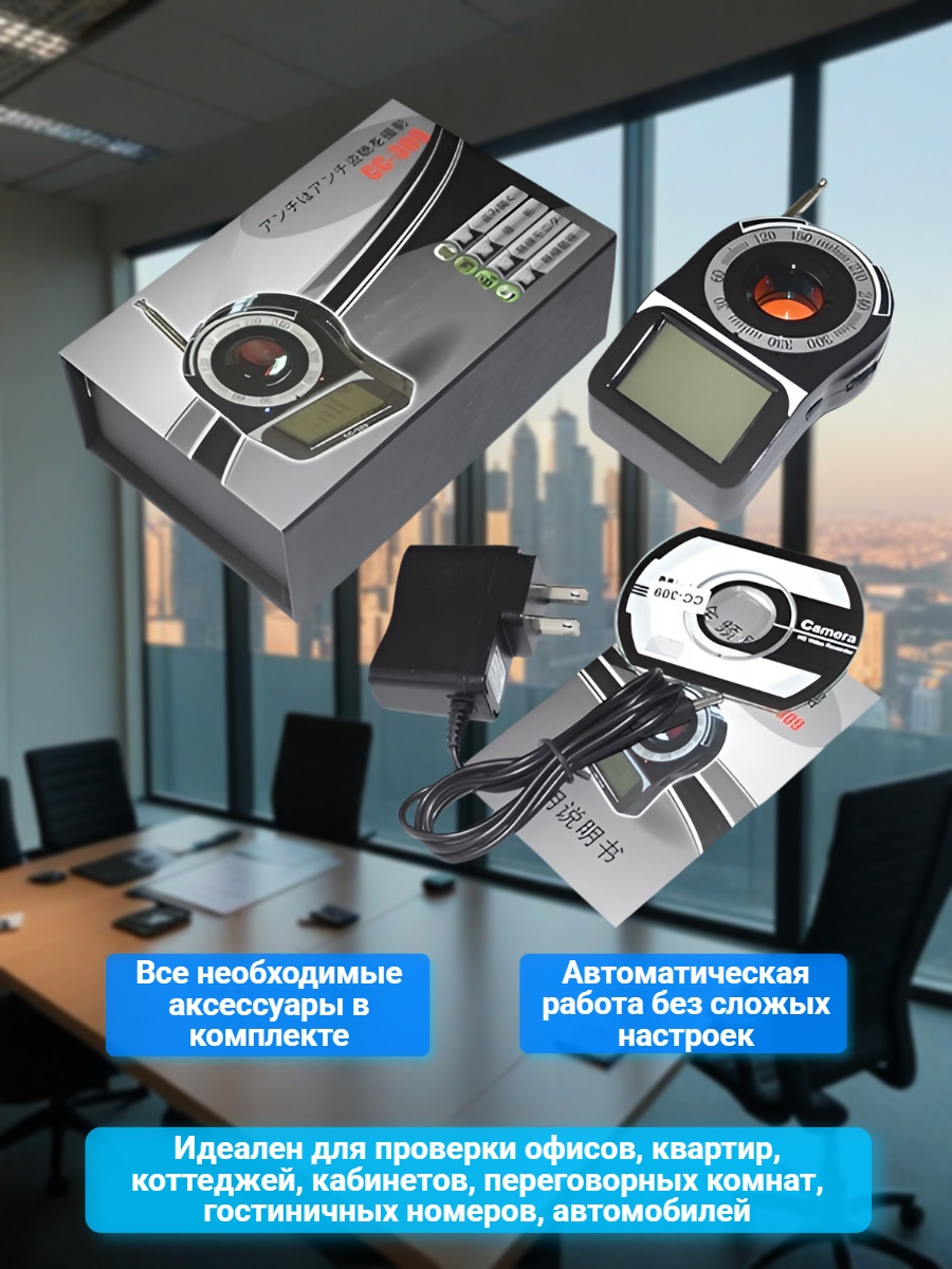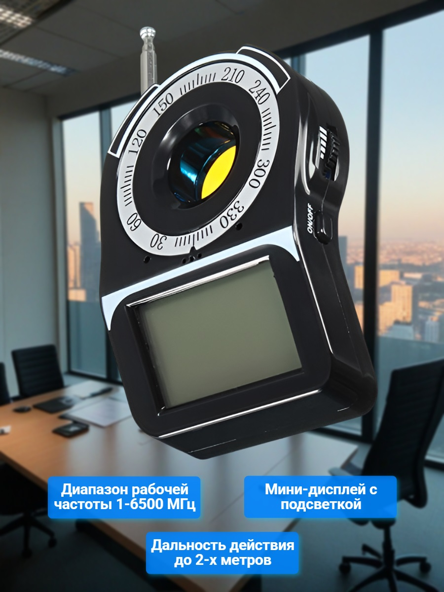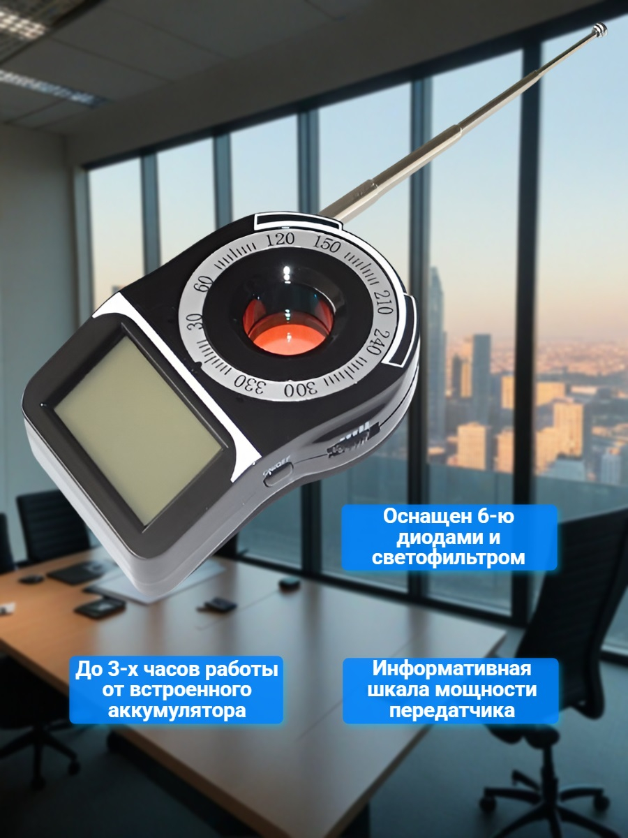 Прибор можно использовать для проверки на наличие шпионского оборудования офисов, квартир и частных домов, отдельных кабинетов, переговорных и конференц-залов, гостиничных номеров, автомобилей и т.д.