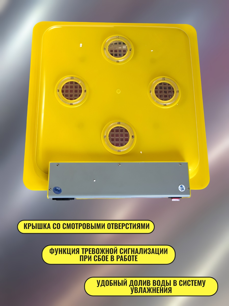 Инкубатор для яиц WQ-36 при неплохой вместимости может использоваться для высиживания как 36 крупных, так и 144 мелких яиц, что обеспечивается универсальным лотком. Прибор очень прост в использовании, т.к. переворот яиц происходит автоматически. Модель получила информативный блок управления для установки температуры, показывающий не только влажность и температуру, но и время переворота, а также длительность инкубации. Может выдавать предупреждения о чрезмерных отклонениях показателей работы.