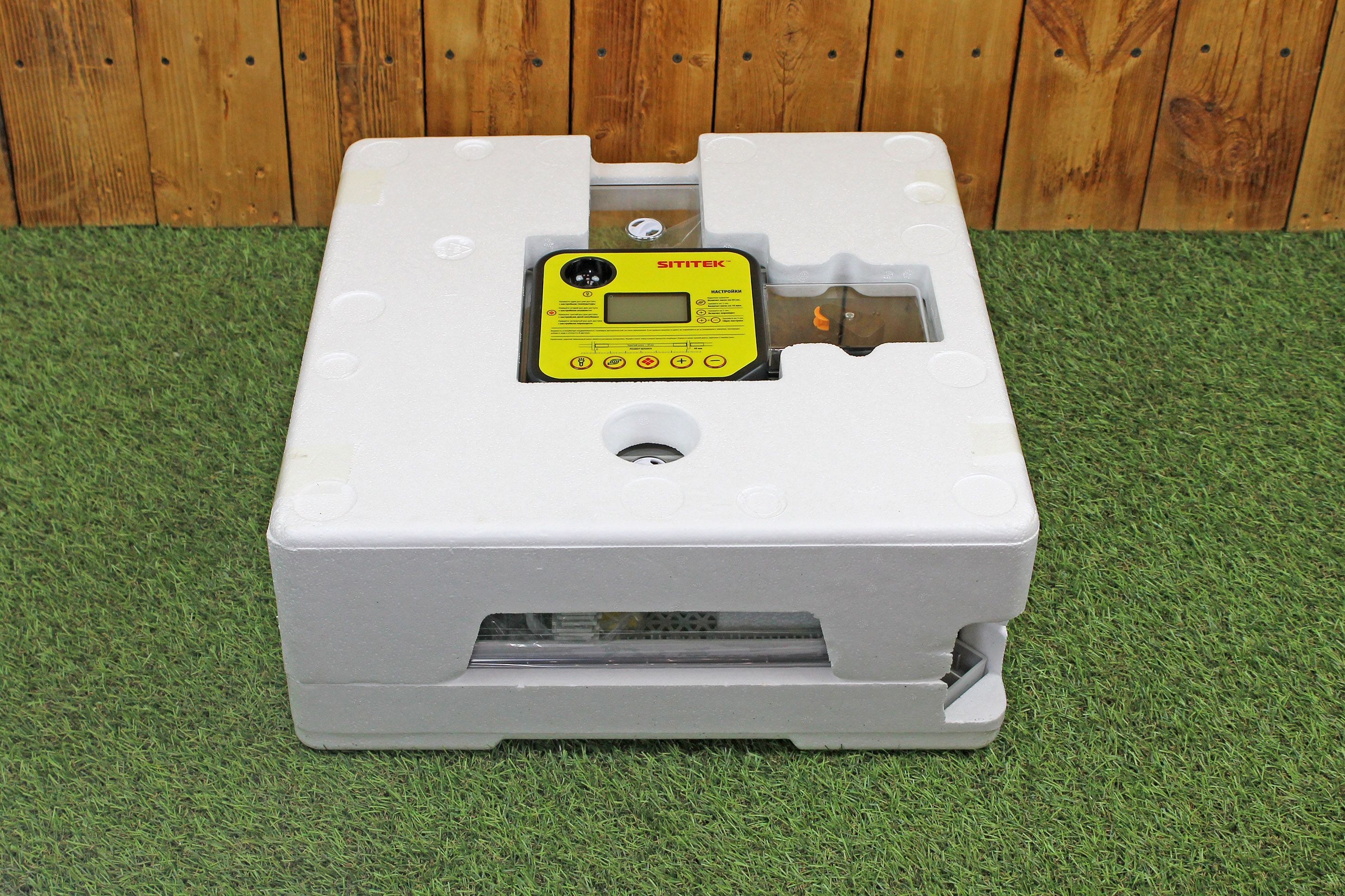 Инкубатор "SITITEK 48" упакован не только в коробку, но и в специальный защитный кожух из пенопласта. Он обеспечивает защиту изделия от ударов и царапин при транспортировке, а также выполняет функцию дополнительного утепления в процессе инкубирования яиц. Так, если в помещении, где располагается устройство внезапно отключится свет или отопление, и температура начнет понижаться, кожух из пенопласта обеспечит защиту инкубатора от остывания в течение нескольких часов. Опытные птицеводы также рекомендуют использовать такой кожух на постоянной основе, если в птичнике температура держится ниже 20°C.