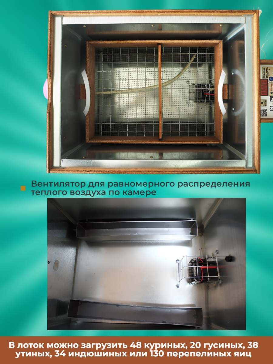 Не требует особого ухода. Когда все цыплята вылупились, нужно будет промыть инкубатор снаружи и изнутри и продезинфицировать камеру перед новым использованием. Лоток для яиц вынимается, а оцинкованный корпус очень легко моется. Поэтому процесс промывки инкубатора не займет много времени.