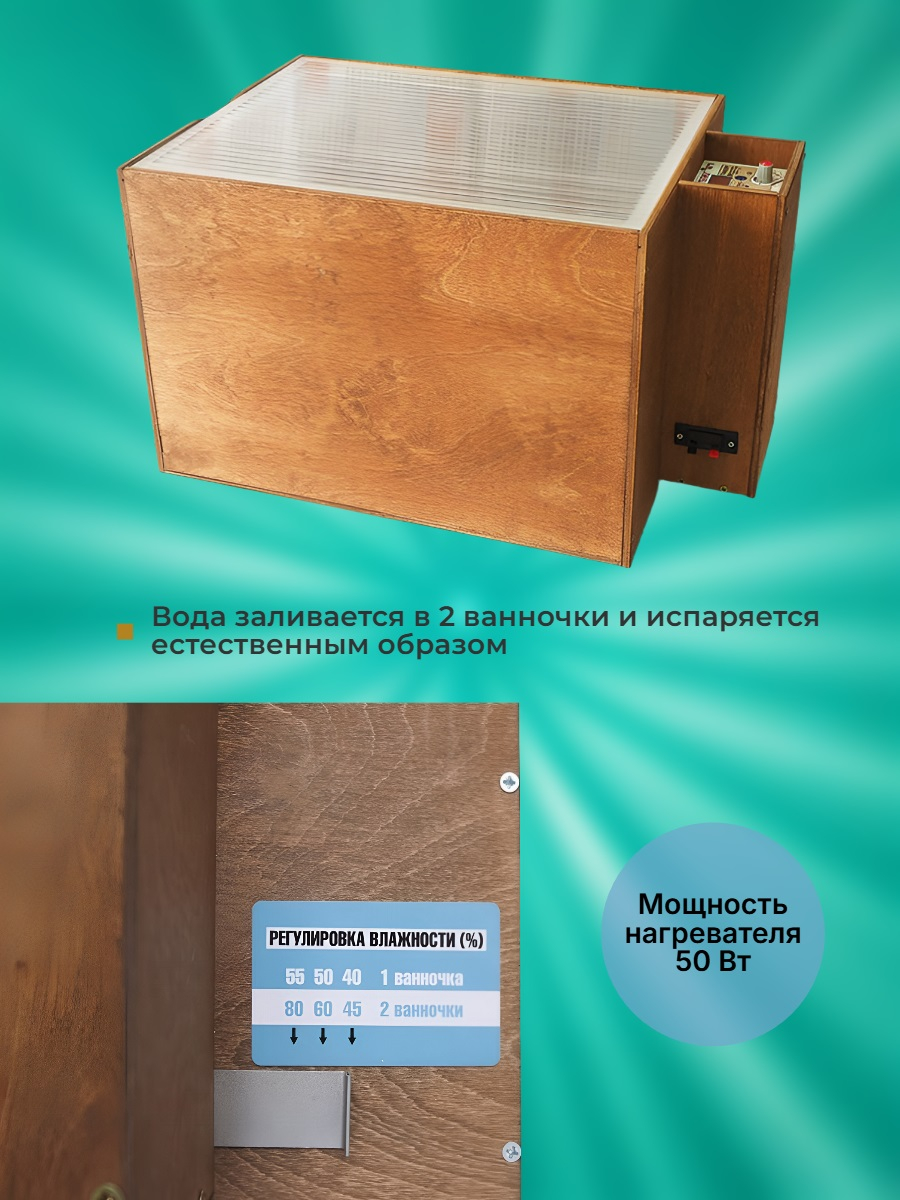 Возможность визуально наблюдать за процессом. Инкубатор имеет прозрачную крышку, через которую отлично видно, что происходит в камере. Когда придет время для вылупления птенцов, вы сможете наблюдать этот процесс. Также через крышку отслеживается уровень воды в емкостях.