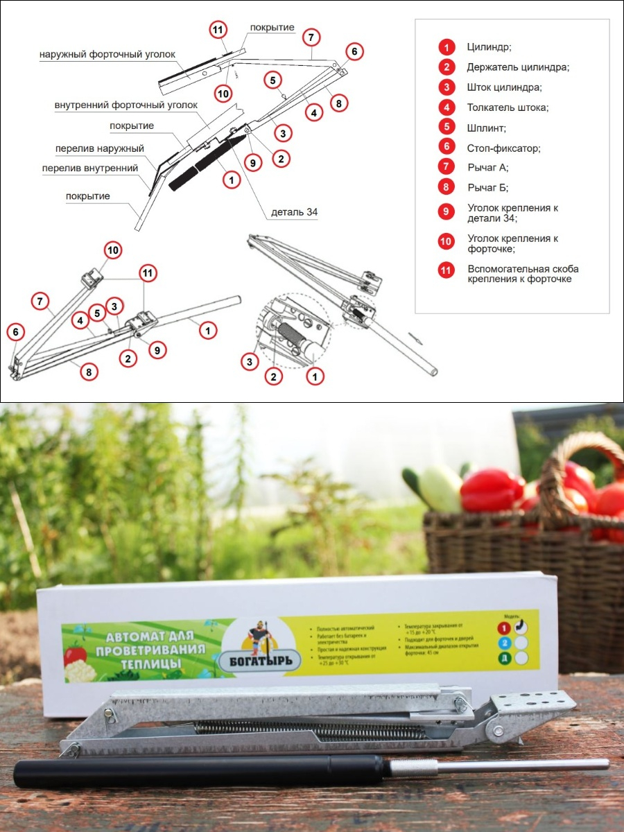 Термоприводы (автоматы) для проветривания теплиц Богатырь