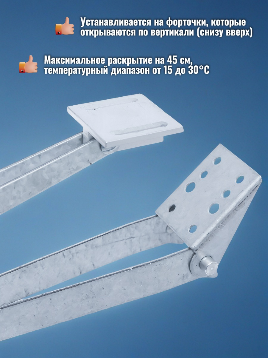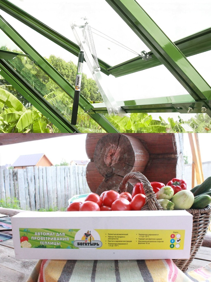 В данный комплект входят термоприводы для автоматического проветривания теплиц "Богатырь-2" — усиленные модели с двухпружинным механизмом, который обеспечивает более надежное удержание форточек весом до 7 кг даже при достаточно сильных порывах ветра до 12 м/с. Работа полностью автоматическая: раскрытие/закрытие форточки происходит постепенно при изменении температуры окружающего воздуха в диапазоне от 15 до 30°C. Данный комплект позволяет купить 4 механизма для проветривания теплицы в полностью металлическом исполнении и при этом неплохо сэкономить!