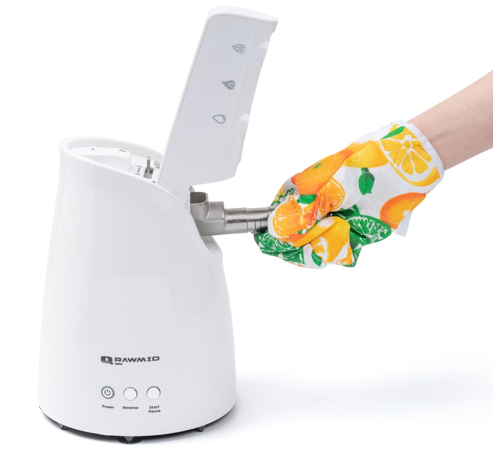 Загружайте только хорошо высушенные орехи и семена. Включите прибор в розетку 220 В, нажмите на кнопку POWER, а затем на кнопку START/PAUSE для запуска программы отжима. Больше ничего делать не нужно! Когда все сырье будет израсходовано, маслопресс автоматически отключится. Вам останется лишь перелить готовое масло в бутылочку, желательно темного цвета, и убрать на хранение. После того как маслопресс остынет, снимите с него помольную камеру и шнек и очистите их от остатков сырья специальной щеточкой. Также их можно промыть водой, а затем хорошо высушить. Больше никакого ухода маслопресс "RAWMID Mini RMO-02" не требует.