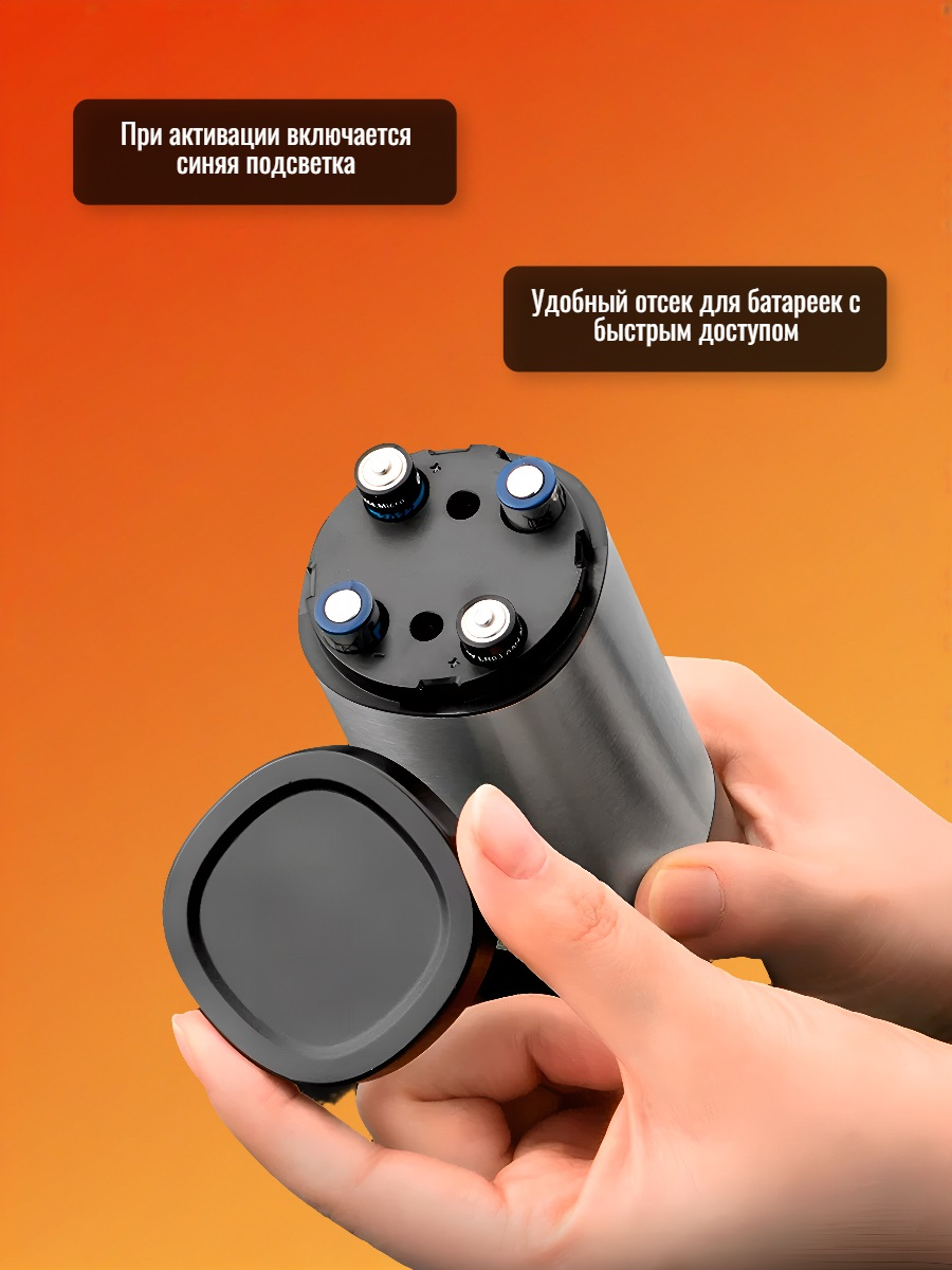 Электрическая мельница гравитационного типа Xiaomi "Circle Joy Gravity Electric Grinder" не имеет на корпусе никаких кнопок. Для ее активации они просто не нужны! Для того чтобы мельница начала работать, ее лишь нужно перевернуть. Во время приготовления блюда это очень удобно! Перед началом использования устройства необходимо установить в отсек для батареек 4 элемента питания типа "ААА". После этого заполните контейнер нужной вам специей (крупная соль, перец, смесь перцев и т.д.) и отрегулируйте степень помола при помощи поворотного регулятора. Теперь поднесите мельницу к тарелке с блюдом или к кастрюле и переверните ее. Это активирует механизм помола — специи начнут сыпаться в блюдо. Пока мельница работает, будет гореть приятная подсветка синего цвета, она позволит вам лучше разглядеть, сколько специй уже попало в блюдо. Для остановки работы мельницы ее нужно перевернуть обратно. Таким кухонным аксессуаром сможет пользоваться кто угодно. Следует также обратить внимание на форму корпуса устройства, он имеет скос на верхней стороне. Это сделано специально для того, чтобы, убирая мельницу на хранение в шкаф, вы всегда ставили ее на полку на одну сторону, т.к. если ее нечаянно перевернуть, то мельница начнет работать, и специи будут сыпаться прямо на полку шкафчика. Скошенная сторона корпуса не позволит поставить устройство на нее.