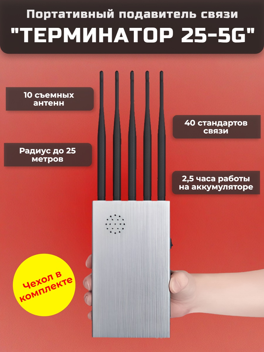 Большинство компактных подавителей связи с автономным питанием, которые можно носить с собой, имеют скромную мощность и могут воздействовать всего на 5-10 частот передачи данных. Часто этого не хватает для эффективной работы. Эксперты нашего интернет-магазина www.mfshop.ru это понимают, поэтому мы с радостью представляем вам новинку! Теперь у нас вы можете купить GSM подавитель "Терминатор 25-5G" — мультичастотный прибор, способный воздействовать на 40 стандартов передачи данных! Он способен подавлять любую сотовую связь и мобильный интернет, включая все самые современные стандарты LTE, запрещать передачу данных по сети Wi-Fi и Bluetooth, воздействовать на устройства GPS и ГЛОНАСС и многие другие.