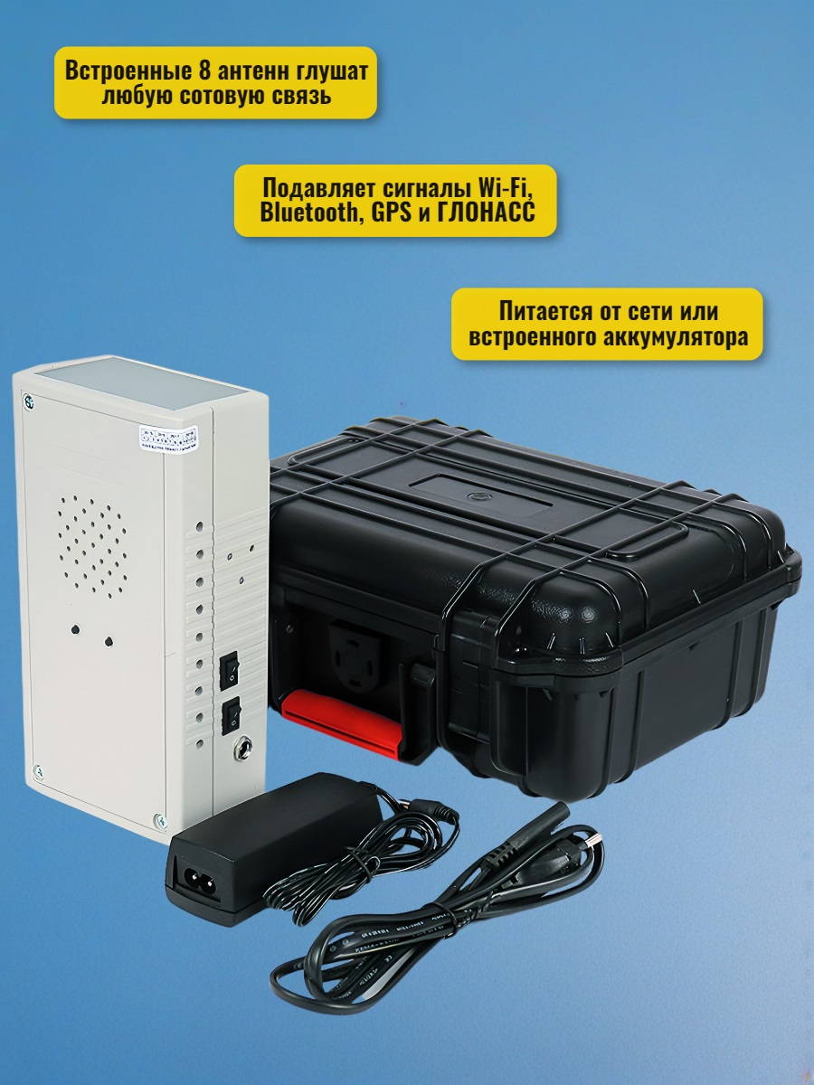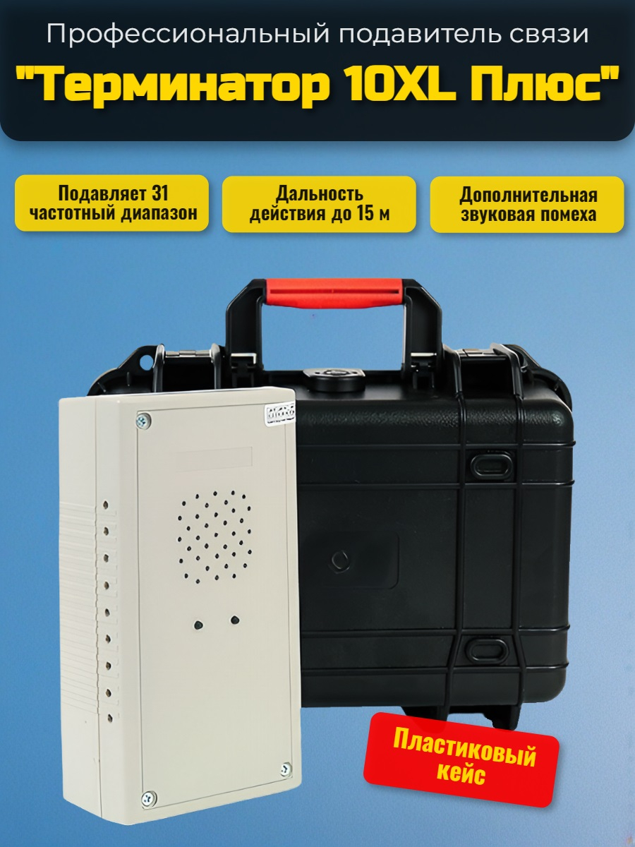 В нашем интернет-магазине www.mfshop.ru уже довольно давно продается подавитель связи "Терминатор 10XL", пользующийся стабильной популярностью. Это достаточно компактное универсальное устройство, которое может работать автономно или от сети круглосуточно, подавляя 31 стандарт передачи данных (глушит сигналы GPS, GSM, 3G, 4G, Wi-Fi и другие в разных частотных диапазонах). Однако теперь в продажу поступила новинка! Обновленная модель "Терминатор 10XL Плюс"! От базовой версии данный прибор отличается тем, что может дополнительно воспроизводить звуковую помеху типа "голосовой хор" через встроенный динамик, тем самым делая невозможной запись разговоров на любые микрофоны (на готовой записи будет слышно только неразборчивое бормотание). Таким образом, это полноценное устройство 2в1: подавитель связи и диктофонов, поставляющийся в удобном кейсе.
