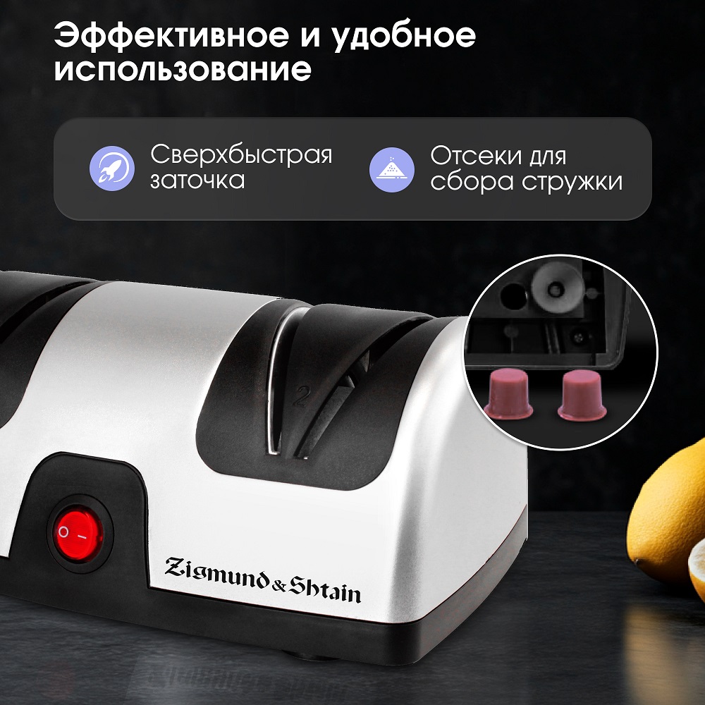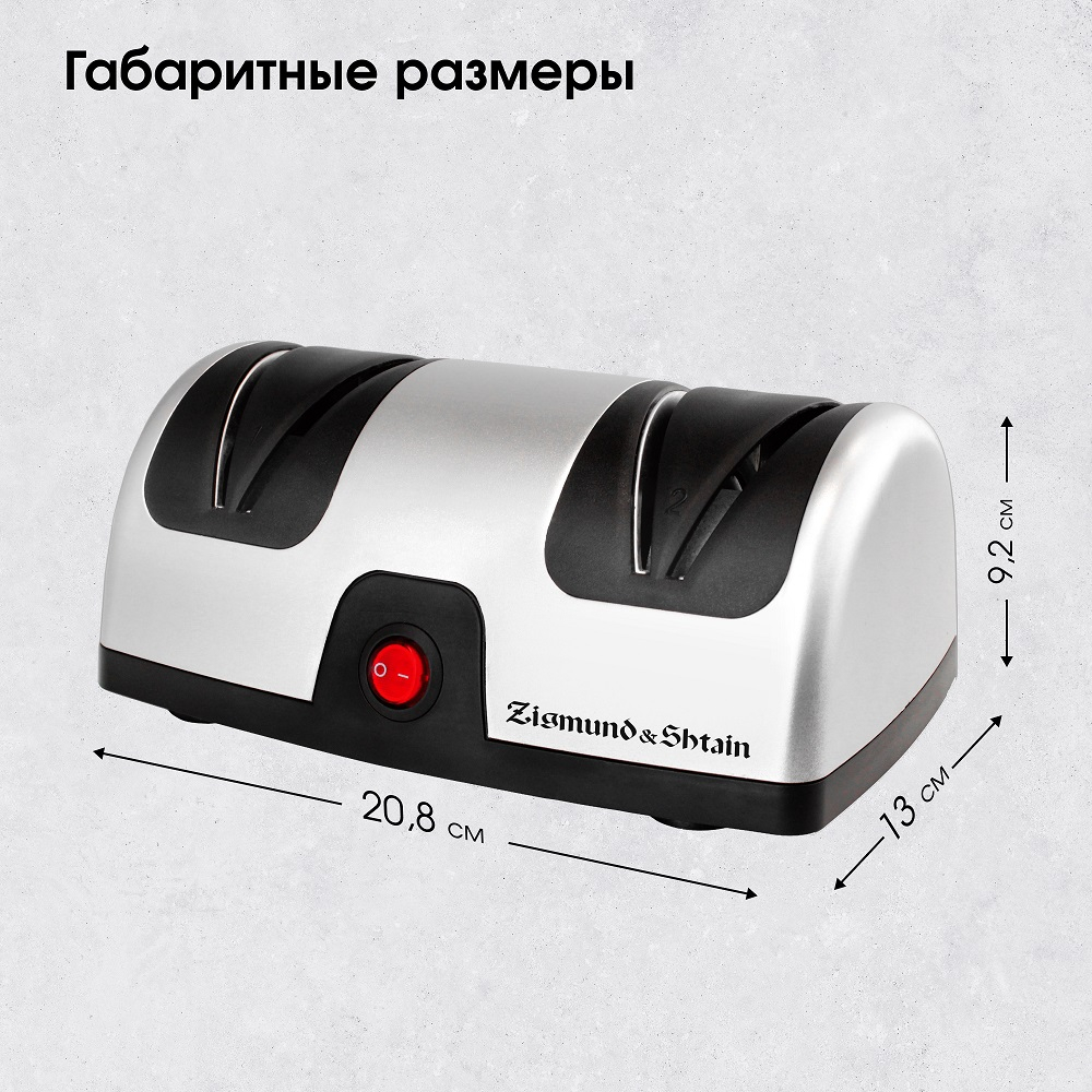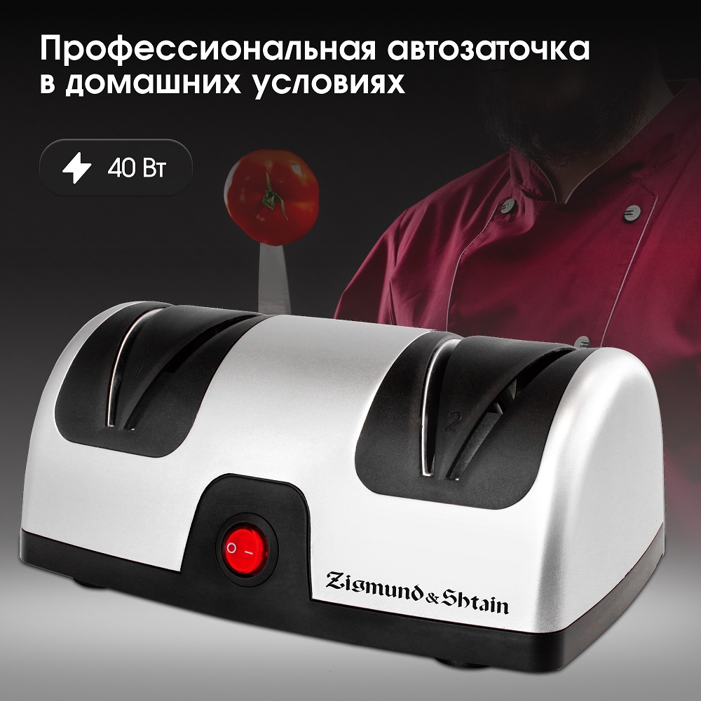 ВНИМАНИЕ! Ножеточка "Zigmund & Shtain ZKS-914" не рассчитана на заточку серрейторных (зазубренных) ножей, ножниц, а также азиатских ножей с односторонним лезвием.