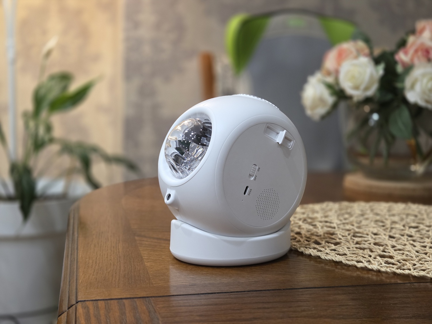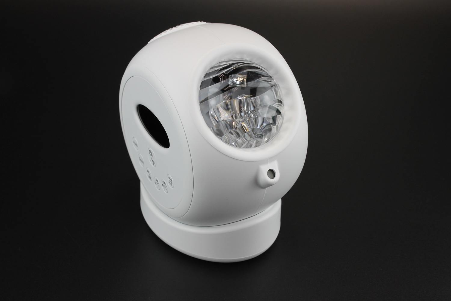 Для настройки фокусировки вращайте регулировочное кольцо возле оптической линзы. С помощью кнопки AUTO на панели управления можно изменять цвет фона, активировать белый цвет, включить / отключить отображение звезд. Для удаленного управления устройством установите на свой смартфон мобильное приложение и подключите к нему проектор. После этого все настройки можно будет делать со смартфона.