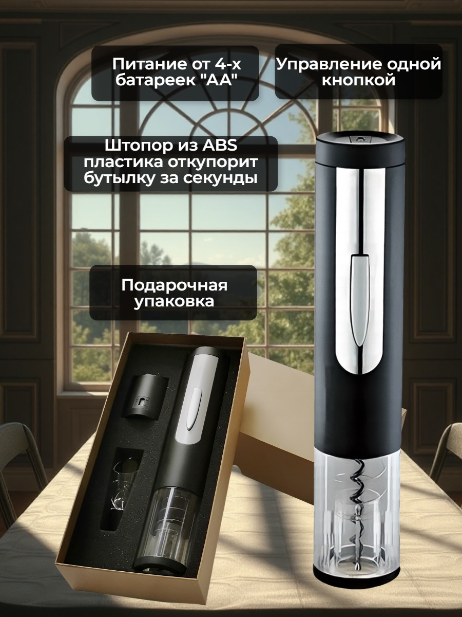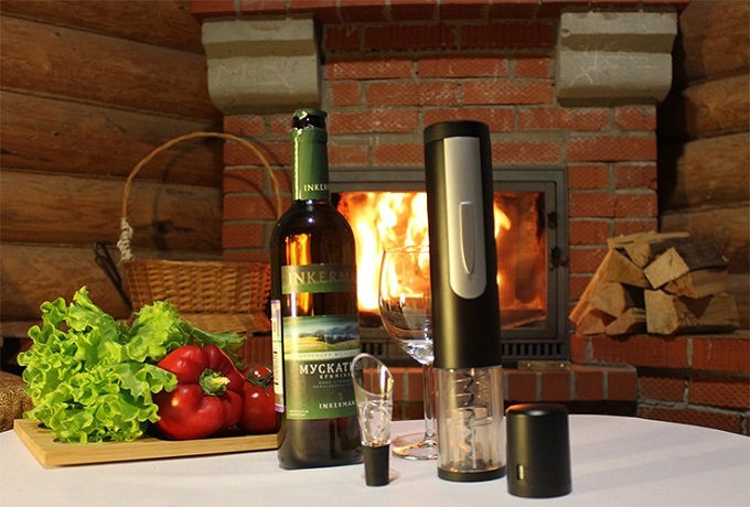 Данный аксессуар в корпусе из прочного ABS-пластика способен за считанные секунды откупорить бутылку вина, при этом не требуя от пользователя никаких физических усилий. Подойдет даже очень хрупкой девушке! Достаточно просто срезать с горлышка бутылки защитную фольгу или пленку с помощью специального круглого ножа, вмонтированного в крышку штопора.