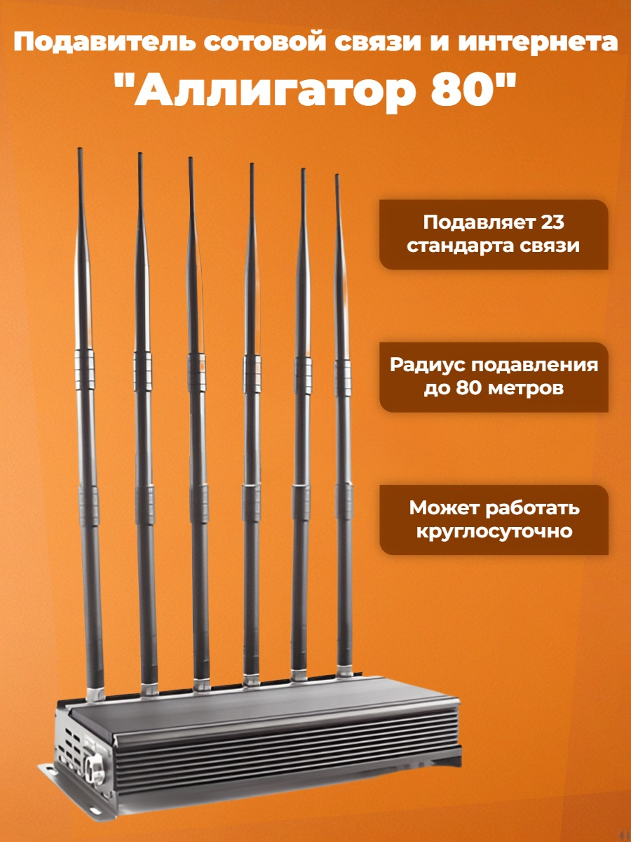 Если перед вами стоит задача оборудовать рабочий кабинет или переговорную комнату подавителем связи с целью защиты от "утечек" личных данных или бизнес-информации в сеть, но при этом ваш бюджет ограничен, советуем вам купить подавитель "Аллигатор 80". Это бюджетная стационарная модель, способная подавлять все основные стандарты беспроводной передачи данных, включая мобильную связь и интернет вплоть до поколения 4G LTE, сети Wi-Fi, Bluetooth и многие другие. Прибор работает в автоматическом режиме, не требуя никаких сложных настроек, поэтому отлично подходит даже малоопытным пользователям.