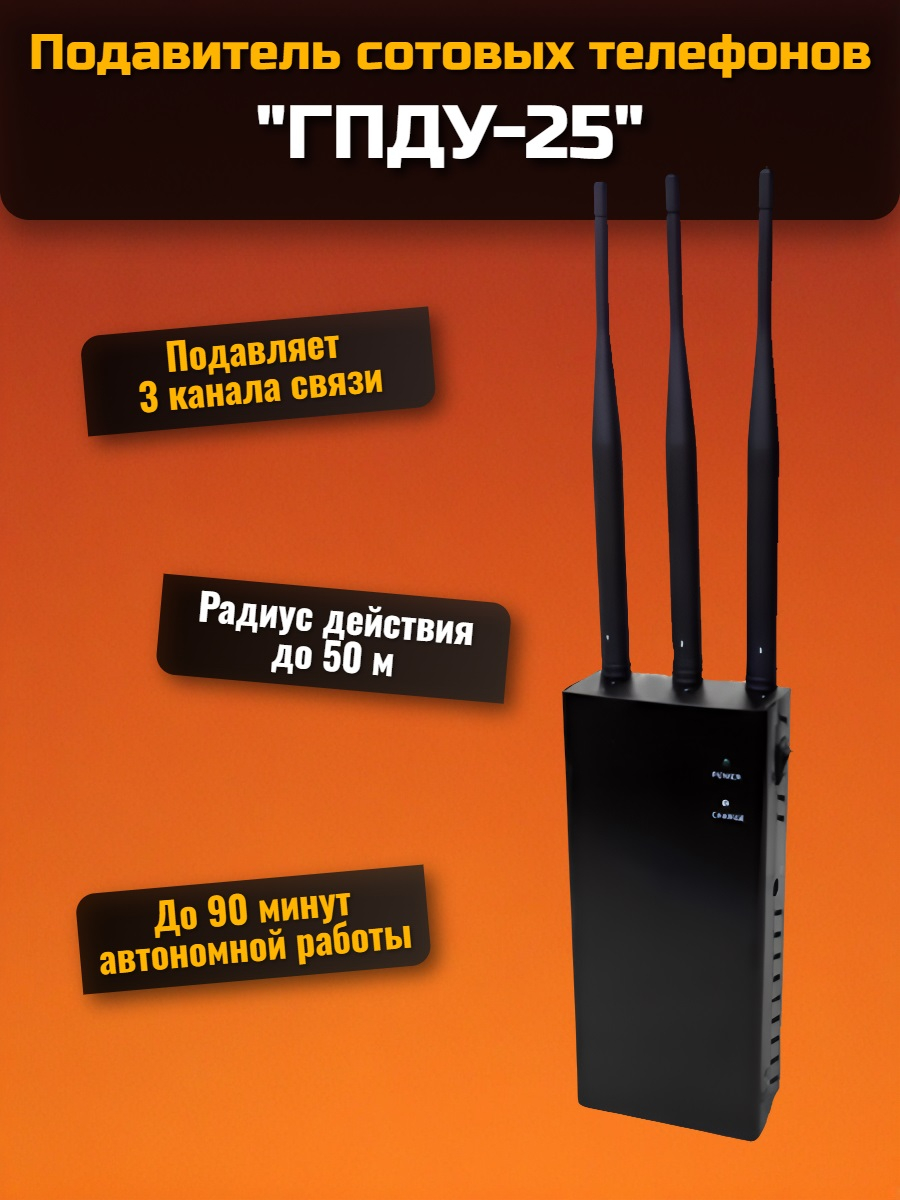 Портативная модель "ГПДУ-25" окажется чрезвычайно полезной для охранных предприятий и служб безопасности. Прибор способен быстро и эффективно подавить каналы дистанционного управления, препятствуя удаленной активации различных устройств шпионского и террористического толка. Так, например, находясь в помещении, "ГПДУ-25" не даст запуститься системе прослушки или скрытого видеонаблюдения, установленных в нем заранее; не позволит привести в действие взрывной механизм и т.д.