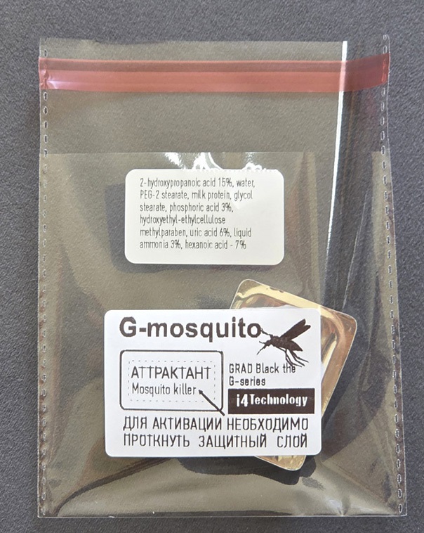 Приманка "G-mosquito" работает независимо от типа и вида уничтожителя комаров. Она является дополнительным приспособлением для повышения эффективности его работы и работает вместе с другими типами приманок. Задача аттрактанта — приманивать комаров, чтобы они летели к нему, а не к находящимся поблизости людям.