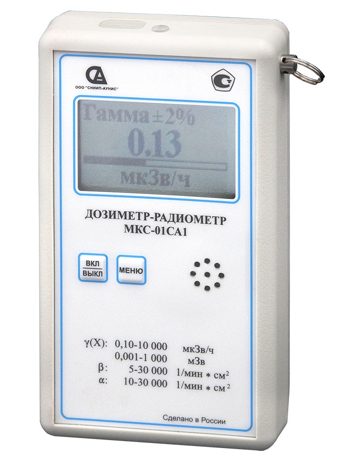 Профессиональный прибор для измерения радиации — дозиметр "МКС-01СА1(ВC)" оборудован детектором ионизирующего излучения (счетчик Гейгера-Мюллера) с тонким слюдяным входным окном. Это позволяет получать точные результаты измерения за короткое время. Обработка данных производится автоматически, результаты измерения выводятся на дисплей. Для удобства при работе с прибором на корпусе предусмотрено страховочное кольцо, на которое можно закрепить прочный шнур (тренчик).