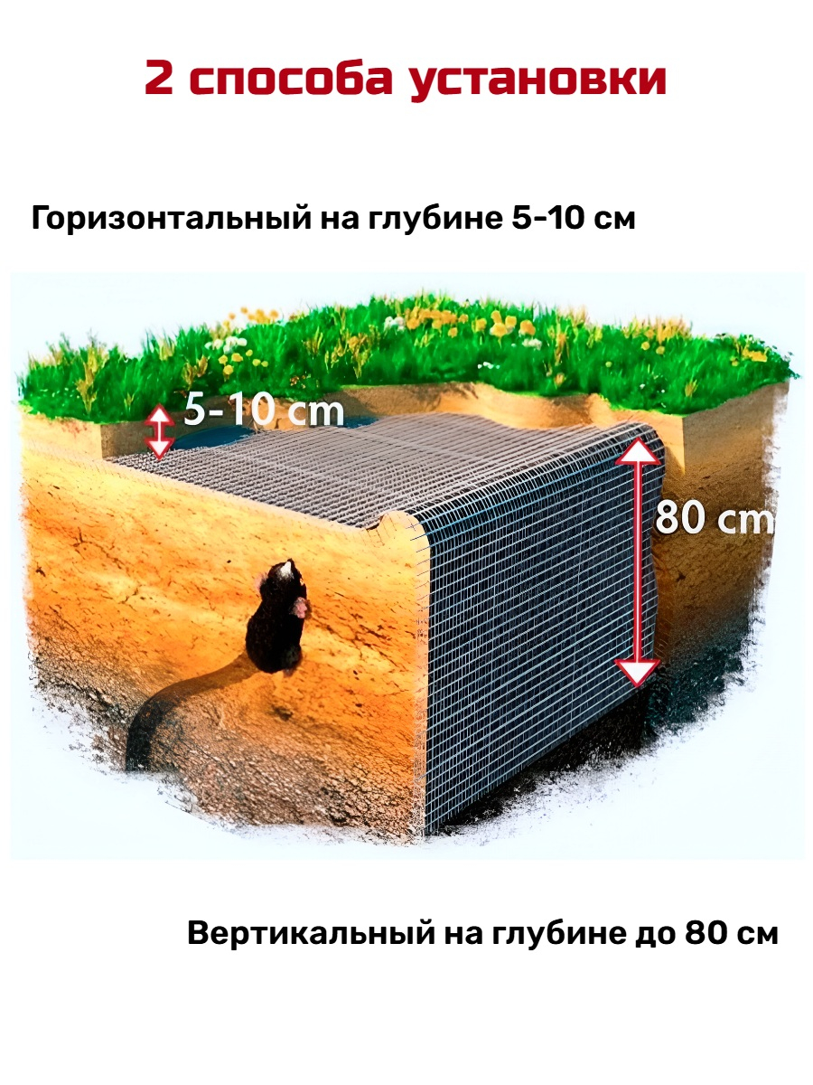 Сетка от кротов "Ястреб СК 30" изготовлена из инновационного полипропилена, что обеспечивает ее высокую прочность и устойчивость к механическим повреждениям. Благодаря этим характеристикам, сетка эффективно предотвращает проникновение кротов и других подземных вредителей на защищаемые территории, такие как газоны и грядки.