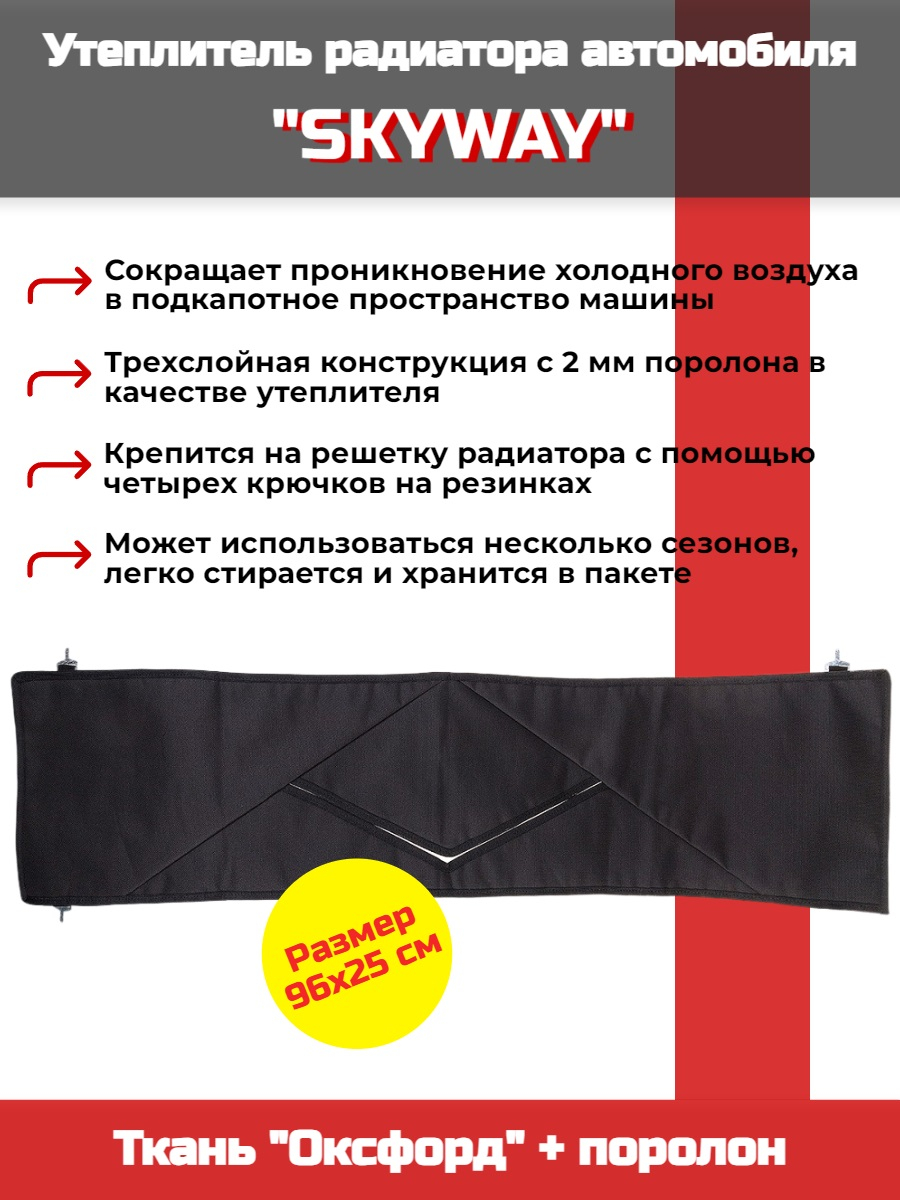 Утеплитель радиатора SKYWAY для ВАЗ 2101, НИВА 96х25 см (оксфорд, поролон)