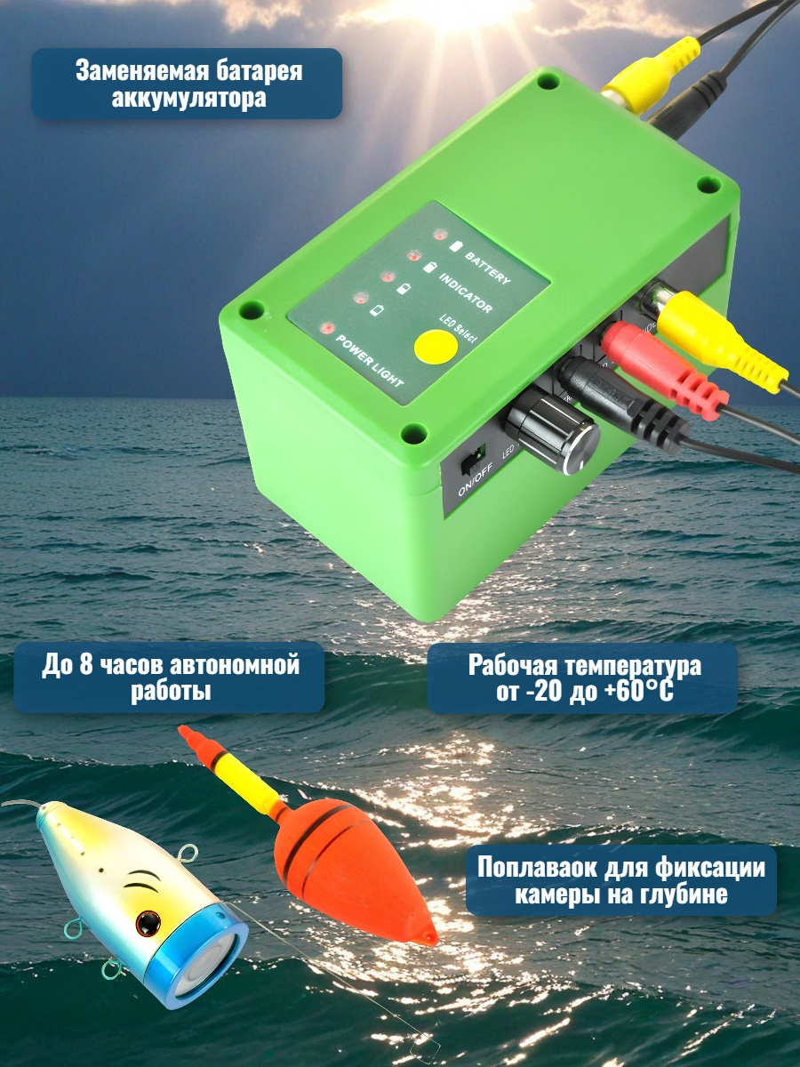 Суть работы данного прибора состоит в том, чтобы передавать на монитор изображение подводного пространства какого-либо водоема. Камера используется для обследования рельефа дна, обнаружения помех и исключения "зацепов" удочки. Кроме того, камера значительно снижает риск потери наживки и увеличивает шансы успешной поклевки. Пользоваться этим устройством сможет каждый. Прежде всего необходимо зарядить аккумулятор, затем с помощью видеокабеля подключить камеру к дисплею (все коннекторы окрашены в разные цвета — ошибиться невозможно). После подключения на камере загорится подсветка, а на дисплее появится изображение, передаваемое с камеры. Теперь, постепенно разматывая кабель с катушки, погрузите камеру в водоем на требуемую глубину. Зафиксировать ее на этой глубине поможет комплектный поплавок. Подберите удачный ракурс камеры, чтобы вы могли визуально наблюдать процесс поклевки. С такой камерой вы сможете наловить гораздо больше рыбы!